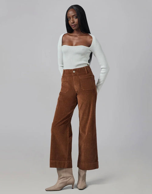 The COLETTE High Rise Wide Leg Corduroy pant delivers effortless fall sophistication with a flattering silhouette that works for every body data-type. Built from premium 4-way stretch corduroy, these pants maintain their shape through countless wears while offering comfortable all-day movement. The high-rise waist pairs beautifully with the fluid wide leg, creating a polished, elongated line. At 30 inches with a 2.5-inch hem, they hit just above the ankle for a modern proportion. True to size and available in multiple colorways, these versatile pants transition seamlessly from casual weekends to elevated occasions. Composition: 98% cotton, 2% spandex. Machine wash, tumble dry low.